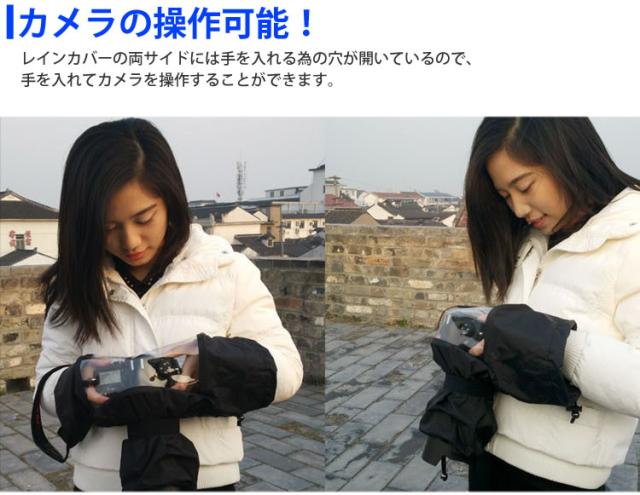 カメラ全体をすっぽり包むので雨の中でもカメラを濡らさずに撮影可能。