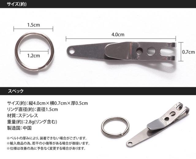 リング付き ミニクリップ マネークリップ ベルトクリップ モール アウトドア コンパクト 小型 ステンレス PR-BTCLIP