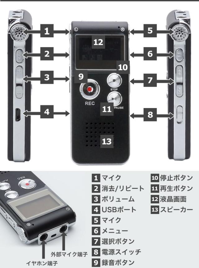 ボイスレコーダー 小型 長時間録音 内蔵メモリ4GB 外部マイク 内蔵スピーカー搭載 MP3再生可能 USB充電 【メール便送料無料】