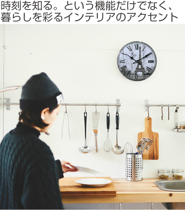 掛け時計 28cm パリ モチーフクロック Paris ( アナログ 時計 壁掛け時計 インテリア 雑貨 壁掛け おしゃれ 掛時計 とけい クロック 掛け ウォールクロック かけ時計 直径 28 ヨーロッパ風 )