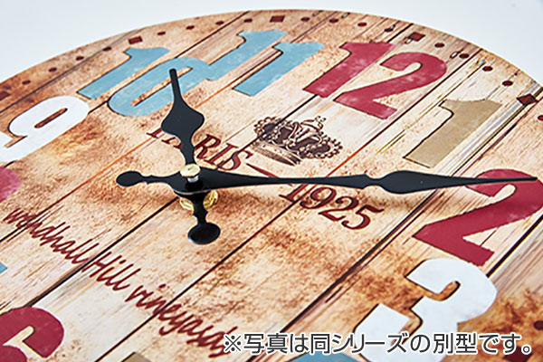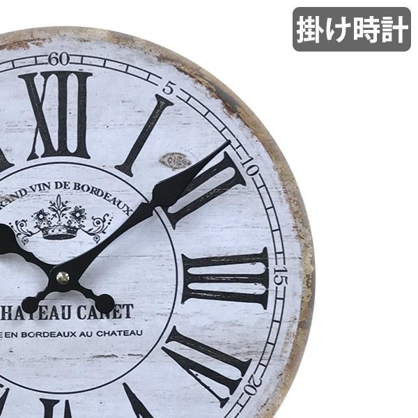 ローマ数字の文字盤と、ペンキが剥がれたようなデザインが、シャビーシックな時計です。真っ白な壁に良く合います。ちょっとくすんだカラーが、お部屋をよりアンティークな雰囲気にしてくれます。リビングやダイニングでおすすめの標準的なサイズです。