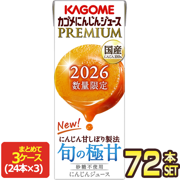 [送料無料] カゴメ カゴメにんじんジュースプレミアム 195ml紙パック×72本[24本×3箱] 【3〜4営業日以内に出荷】 野菜ジュース 野菜 人参 にんじんジュース ベータカロテン 国産 限定