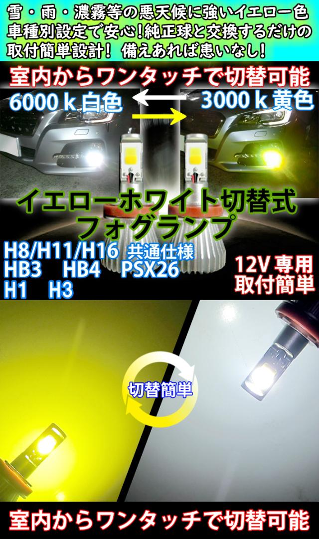 室内から切替可能 ヴィッツ KSP.NCP.NSP. NHP13# H26.04〜H29.01 H8/H11/H16 車種別LEDフォグ イエロー/ホワイト切替式