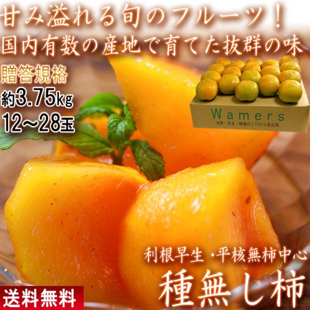 種無し柿 約3.75kg 12〜28玉入り 奈良・岐阜・和歌山県産中心 贈答規格 秀〜優品 甘み豊かな旬のフルーツ!本場のカキを全国より厳選