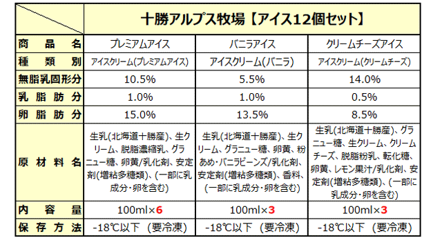 | ※こちらの商品は、十勝アルプス牧場アイス12個セットです。 |