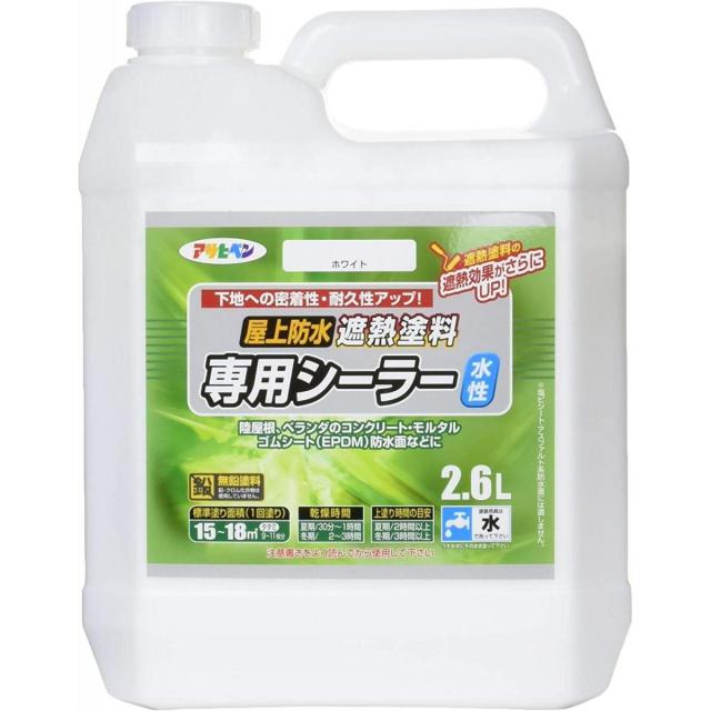アサヒペン 水性屋上防水遮熱塗料用シーラー ホワイト 2.6L 屋外用 ツヤ消し ゴムシート防水層可