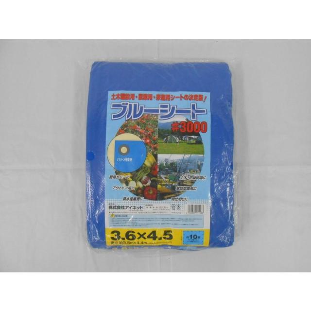 【在庫有・即納】ブルーシート #3000 厚手 3.6m×4.5m 水害 災害 防災 対策 レジャーシート 台風 作業 アウトドア 建設 家庭菜園 アイネット