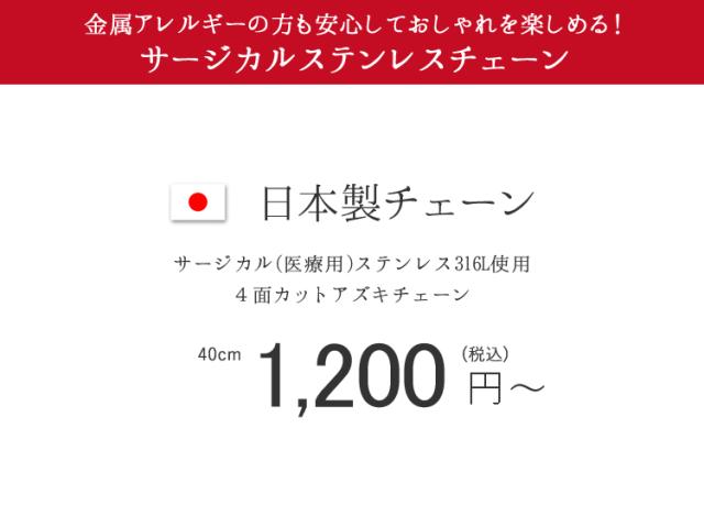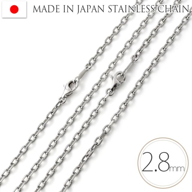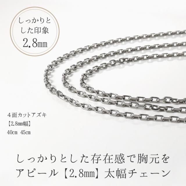 ネックレス チェーン サージカルステンレス製 太幅2.8mm 4面カットあずき 小豆 金属アレルギー対応 316L 日本製 40cm 45cm 国産 stk4080