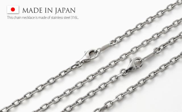金属アレルギーの方でも安心!4面カットアズキ【幅2.8mm】サージカルステンレス316L チェーンネックレス 日本製