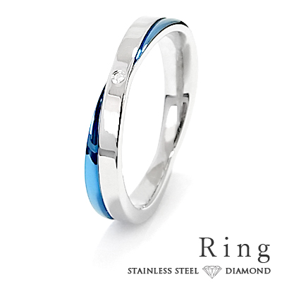ダイヤモンド入りブルーカラーコーティングステンレスリング。