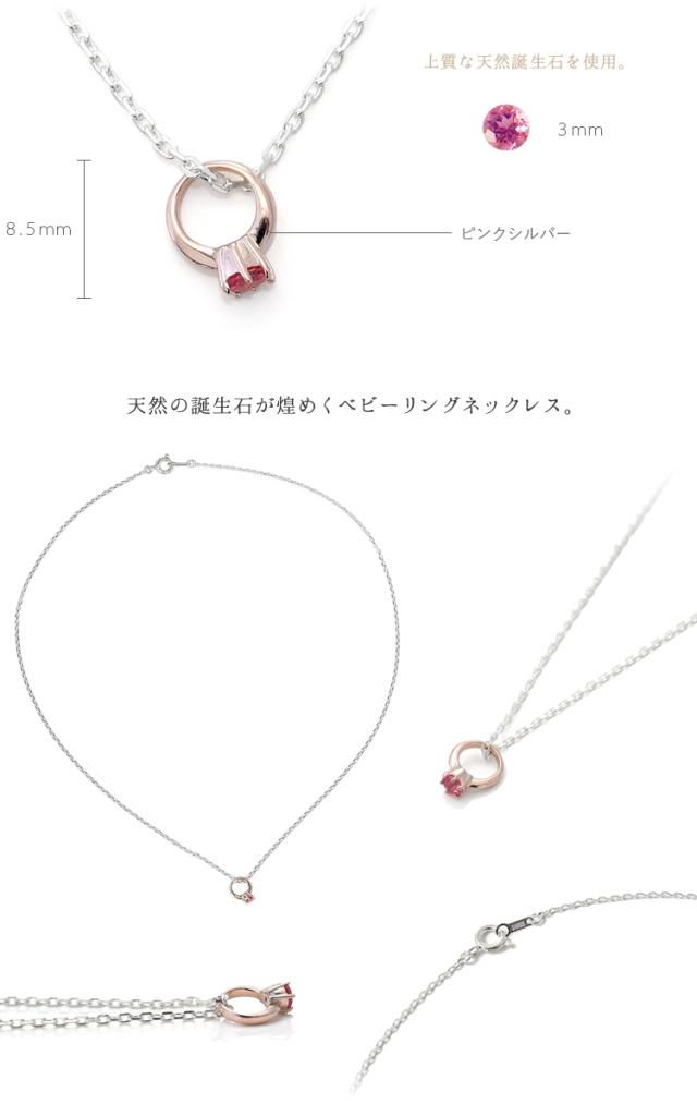 誕生石ベビーリングネックレス♪ピンクシルバー