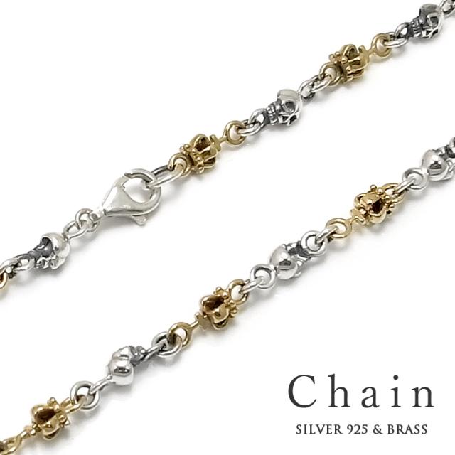 ネックレス チェーン シルバー Silver 925 シルバーチェーン デザインチェーン クラウン 王冠 スカル ブラス 真鍮 いぶし仕上げ 幅4.5mm jln101