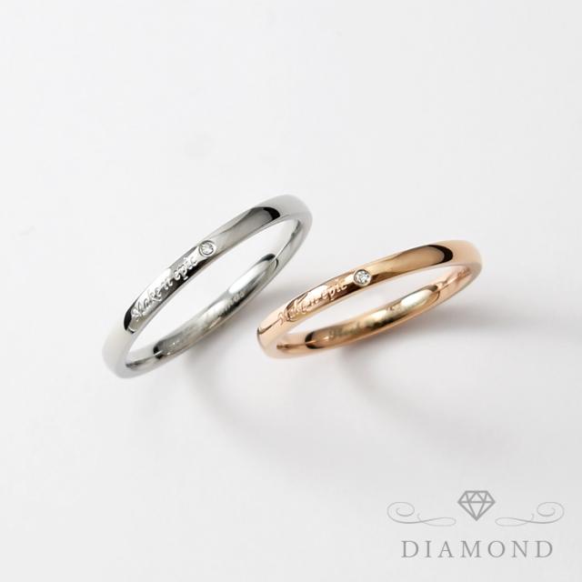 ペアリング 2本セット ステンレス 結婚指輪 刻印 ダイヤモンド シンプル つけっぱなし 細身 甲丸 スティールシルバーカラー ローズゴールドカラー おしゃれ 指輪 マリッジリング サージカルステンレス 316L ノンアレルギー 金属アレルギー対応 grsd116pair