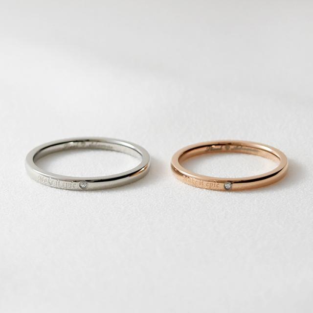 ダイヤモンドをあしらった細身の甲丸デザインに、Make it epic(最高の物語を築こう)のメッセージを添えたペアリング。
