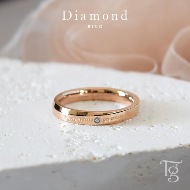 リング レディース ステンレス 刻印 ダイヤモンド シンプル ローズピンクゴールドカラー メッセージ おしゃれ 指輪 サージカルステンレス grsd115rg