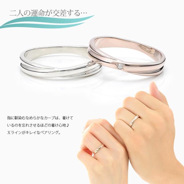ペアリング 2本セット 刻印無料 シルバー925 ピンクシルバー ダイヤモンド シンプル クロスライン Xライン おしゃれ 指輪 偶数サイズ マリッジリング 結婚指輪 Silver 925 (jlr045_054_pair)