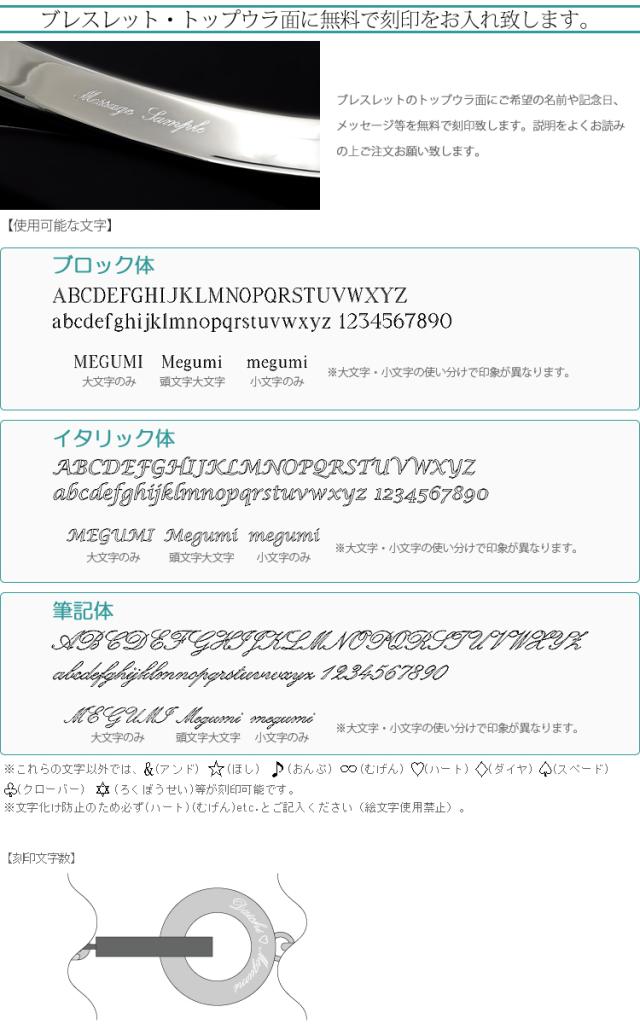 【ブレスレットウラ面刻印】 1行のみ:15文字まで |
