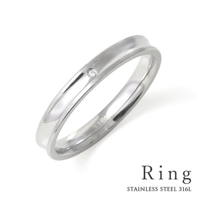 刻印 リング メンズ ステンレス ジルコニア シンプル 細身