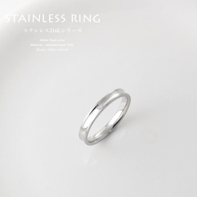 リング メンズ ステンレス 刻印 キュービックジルコニア シンプル 艶消し マットライン スティールシルバーカラー 細身 おしゃれ 指輪 grss107st