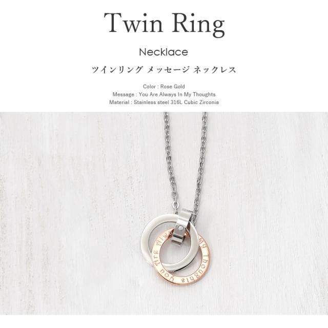 ネックレス レディース ステンレス 刻印無料 キュービックジルコニア ツインリング メッセージ シンプル おしゃれ ペンダント ローズゴールドカラー (lstn004_rg)