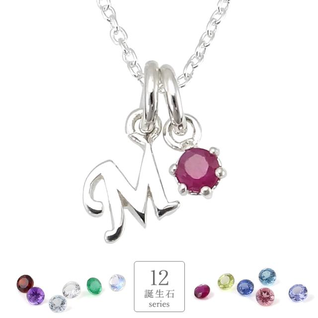 ネックレス レディース イニシャル 誕生石 シルバー925 45cm 50cm ガーネット アメジスト ムーンストーン ルビー ペリドット サファイア ピンクトルマリン トパーズ タンザナイト bj453_475