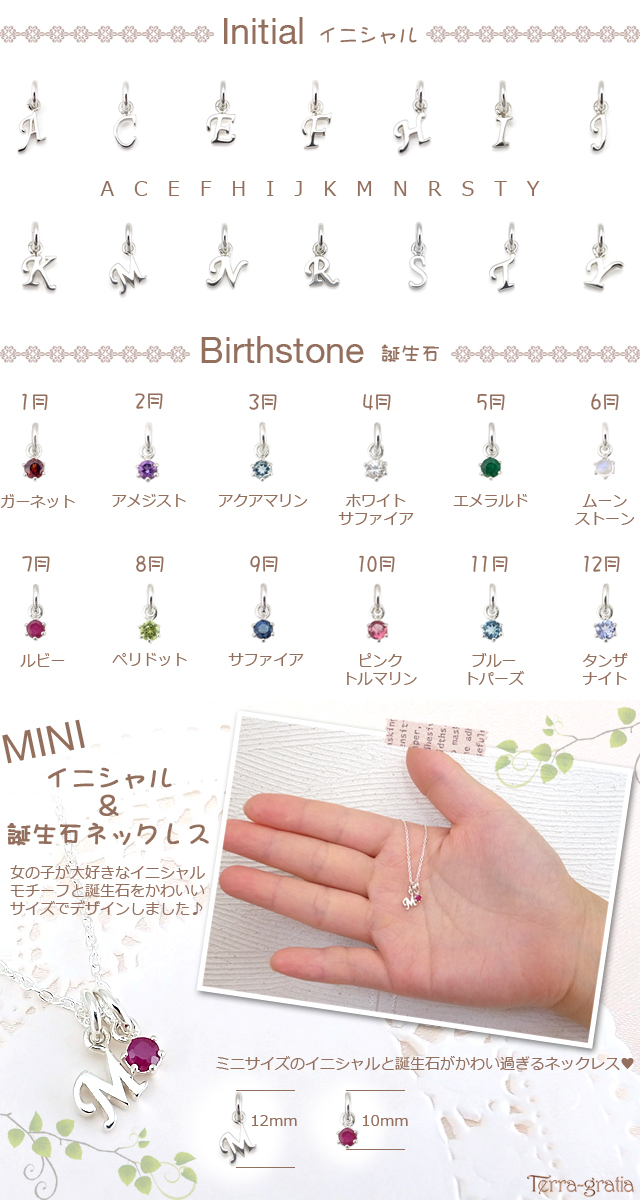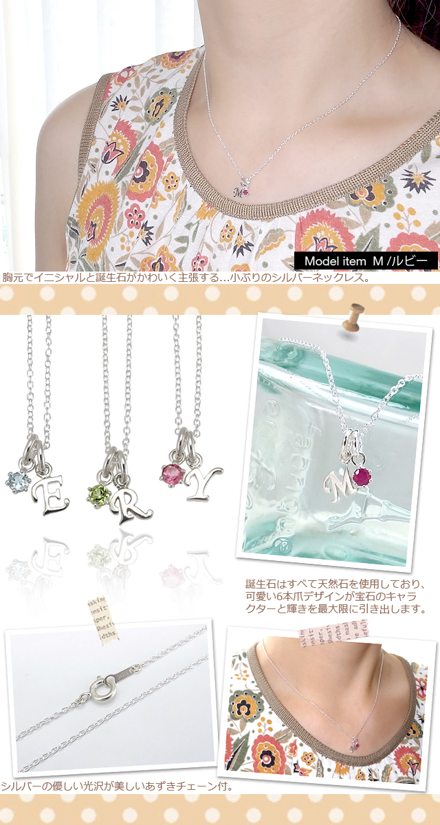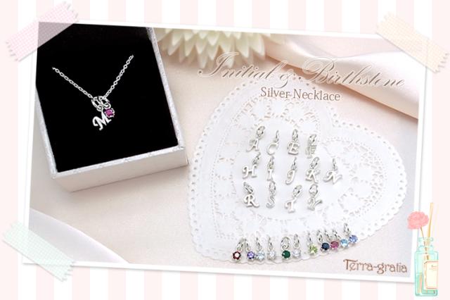 ミニ☆イニシャル&誕生石ネックレス。天然石使用、シルバー925レディースネックレス。