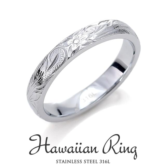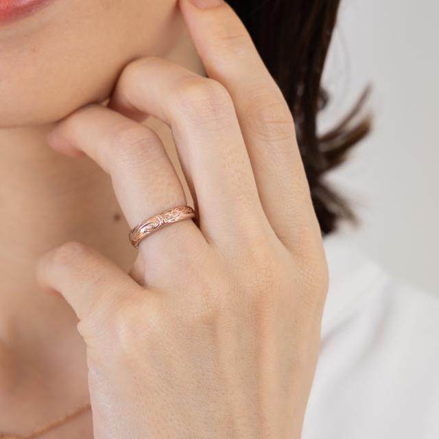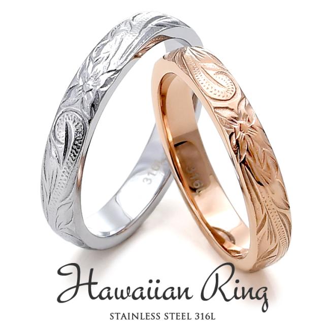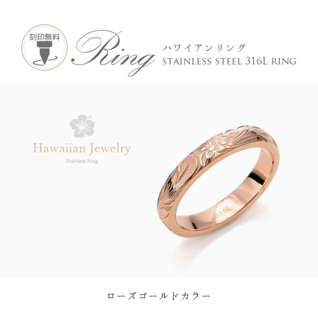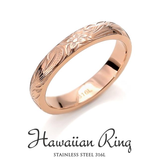 ハワイアンジュエリー リング レディース ステンレス 刻印 プルメリア スクロール 甲丸 シンプル ローズピンクゴールドカラー おしゃれ (grss361rg)
