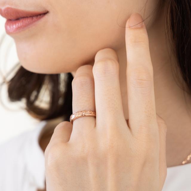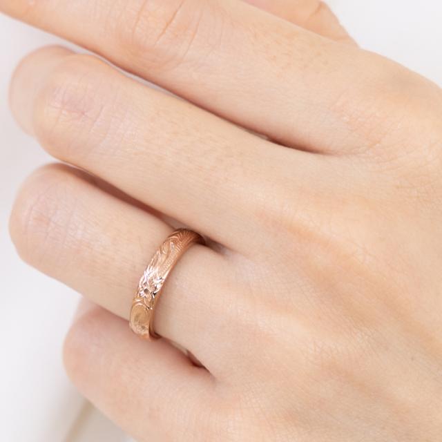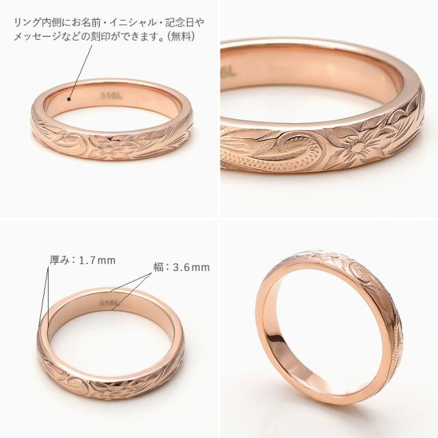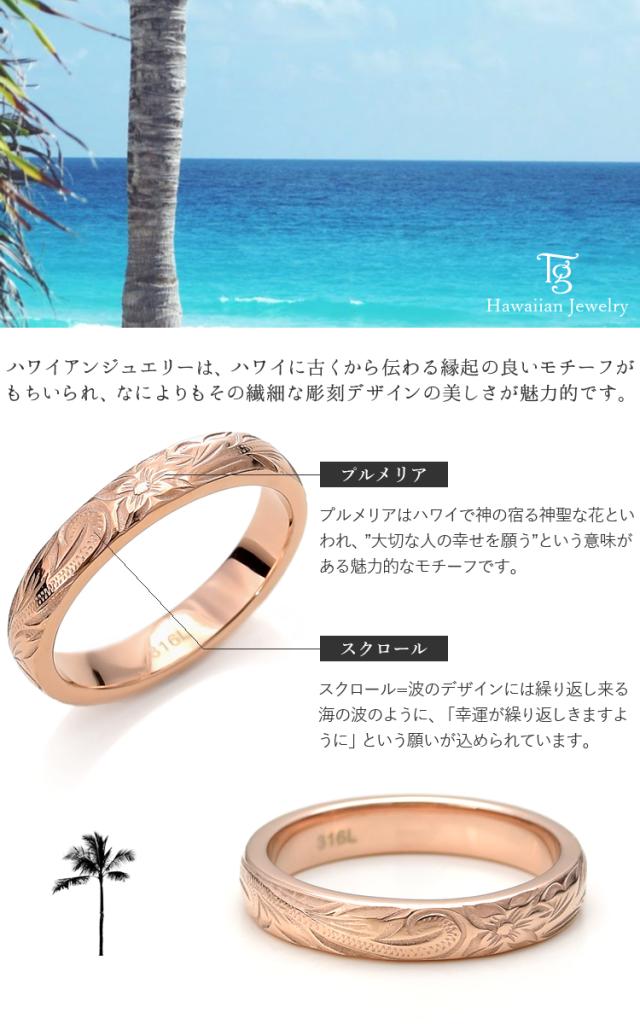 ハワイアンジュエリー リング レディース ステンレス 刻印 プルメリア スクロール 甲丸 シンプル ローズピンクゴールドカラー おしゃれ grss361rg