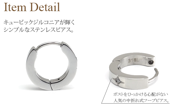 ピアス ステンレス 316L フープピアス キュービックジルコニア サージカル 金属アレルギー対応 中折式 メンズ レディース 男女兼用 片耳 ギフト ホワイトデー gess94