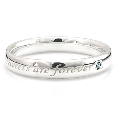 ブルーダイヤモンド入りメッセージ甲丸デザイン、シルバーリング。