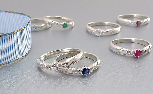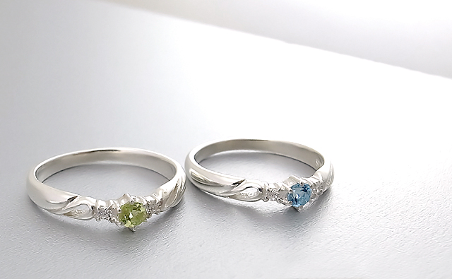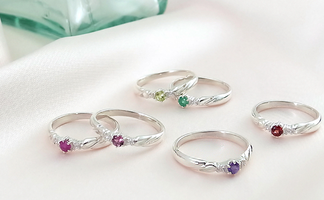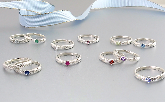 誕生石を上品にセットした大人可愛いシルバーリング。名入れ刻印無料で承ります♪