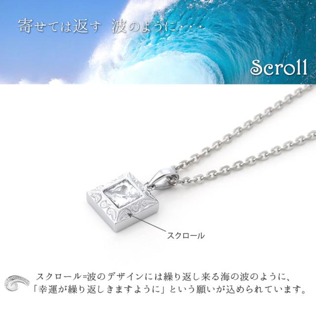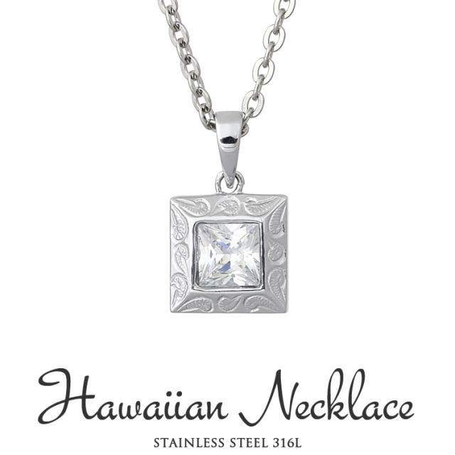 ハワイアンジュエリー ハワイアン ネックレス 刻印無料 ステンレス 金属アレルギー対応 サージカルステンレス316L スクロール 波 キュービックジルコニア (gpss833)