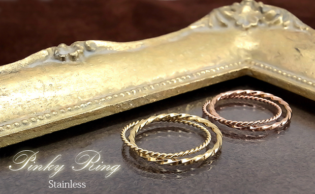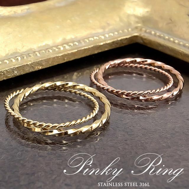 ピンキーリング ファランジリング レディース リング 指輪 二連 キラキラ ステンレス サージカル 金属アレルギー対応 母の日 ギフト プチプラアクセ イエローゴールドカラー ピンクゴールドカラー grss494