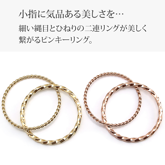細い縄目とひねりの二連リングが美しく繋がるピンキーリング。ファランジリングとしてもご使用頂けます。