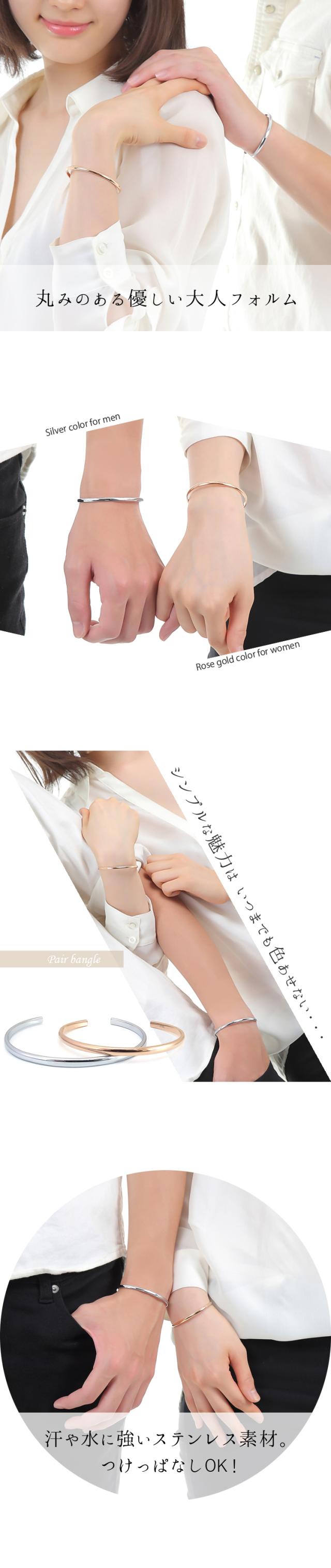 ペアバングル 刻印無料 2本セット サージカルステンレス316L 金属アレルギー対応 つけっぱなし 甲丸 ペアブレスレット シルバーカラー ローズゴールドカラー ペア バングル ブレスレット ランキング ギフト プレゼント 誕生日 記念日 ホワイトデー クリスマス(gbsg13rg_sv_pair)
