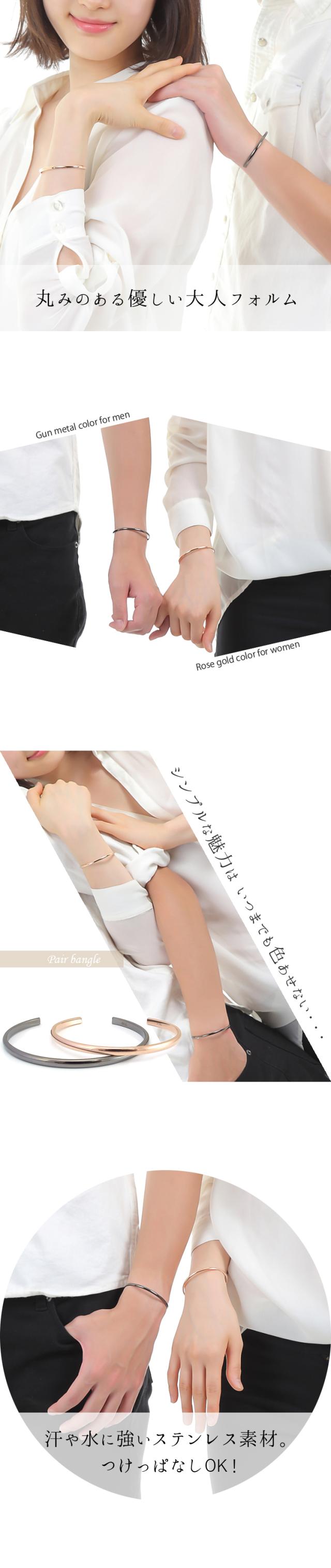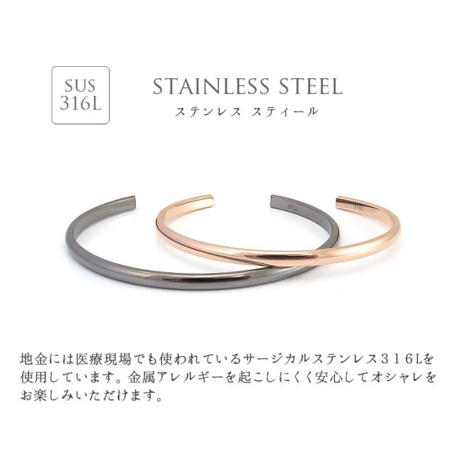 ペアバングル 刻印無料 2本セット サージカルステンレス 金属アレルギー対応 つけっぱなし 甲丸 ペアブレスレット ブラックカラー ピンクゴールドカラー ペア バングル ブレスレット ギフト プレゼント 誕生日 記念日 ホワイトデー クリスマス (gbsg13rg_gun_pair)