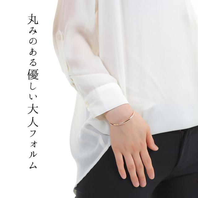 甲丸デザインの丸みを帯びたなめらかな曲線が美しいローズゴールドカラーのバングル。