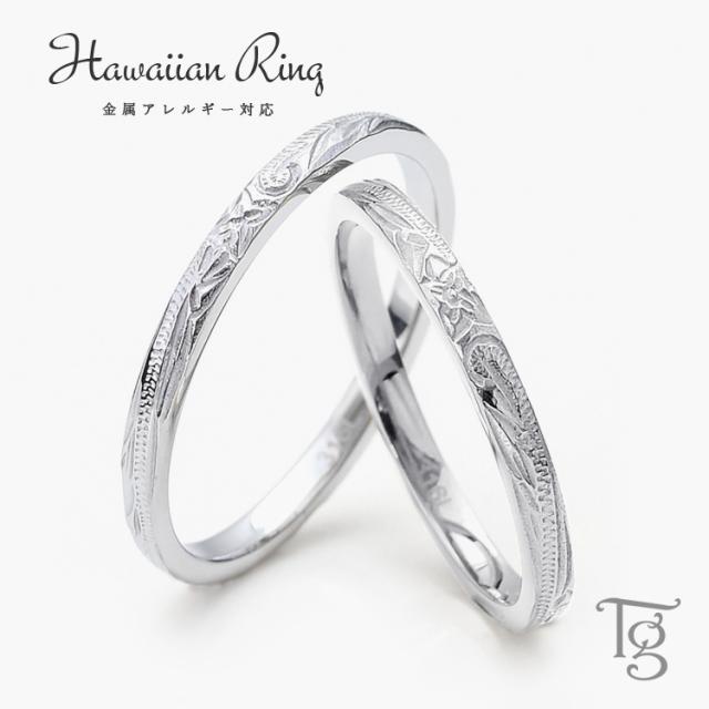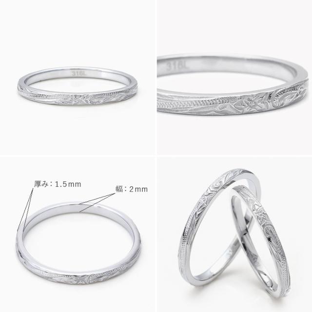 ハワイアンジュエリー ペアリング 2本セット ステンレス 結婚指輪 刻印 つけっぱなし 甲丸 細身 スクロール プルメリア おしゃれ ハワイアン シルバーカラー 指輪 マリッジリング サージカルステンレス 316L ノンアレルギー 金属アレルギー対応 grss580sv_sv_pair