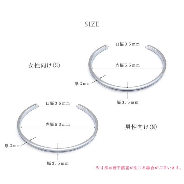 | 寸法/重量 | S:幅3.5mm厚2mm内幅55mm口幅35mm/6.3g M:幅3.5mm厚2mm内幅60mm口幅36mm/7.4g |
