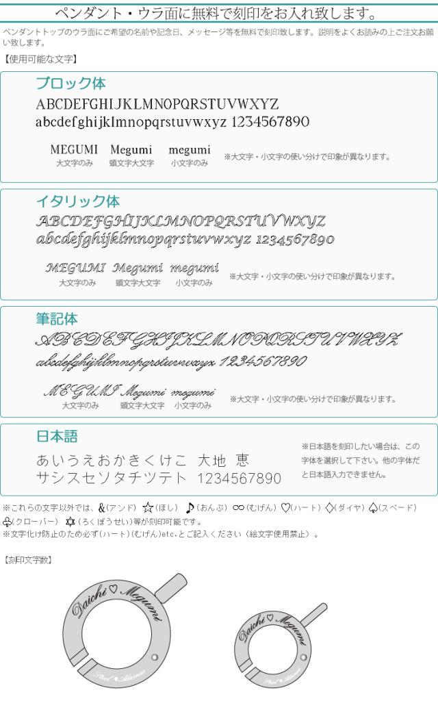 ・刻印可能な文字数はスペース含めて13文字(日本語は8文字)までになります。(※文字数が多すぎると入りきらない恐れがあります。)