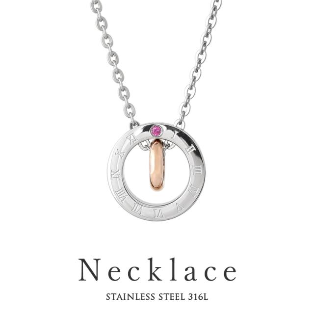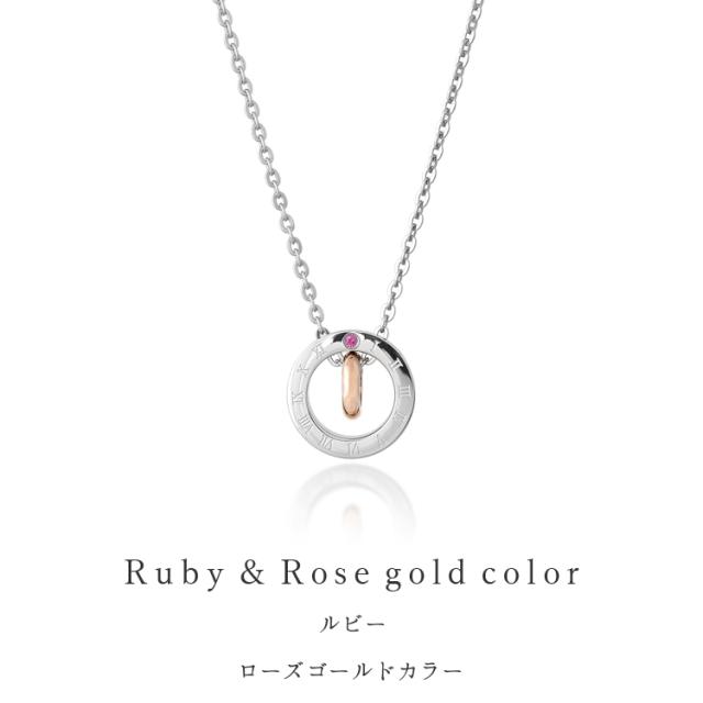 ネックレス レディース 刻印無料 ステンレス ルビー ローマ数字 シンプル おしゃれ リングモチーフ ペンダント サージカル 316L 金属アレルギー gpss1038rg