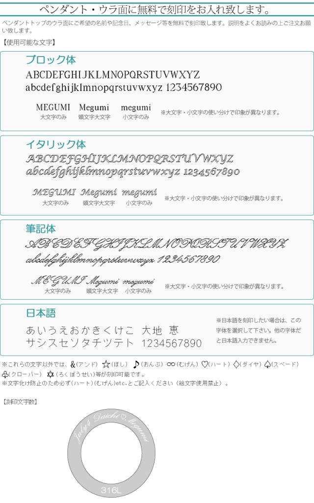 【ペンダントウラ面刻印】 1行のみ:20文字(日本語12文字)まで |