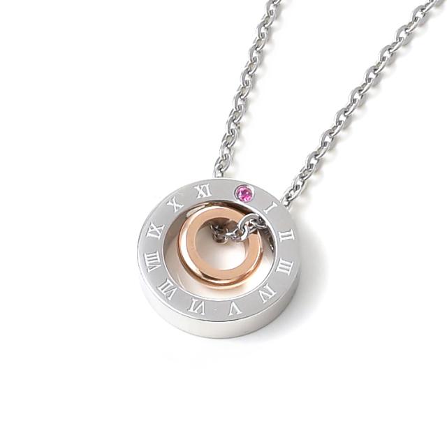 ネックレス レディース 刻印無料 ステンレス ルビー ローマ数字 シンプル おしゃれ リングモチーフ ペンダント サージカル 316L 金属アレルギー (gpss1038rg)
