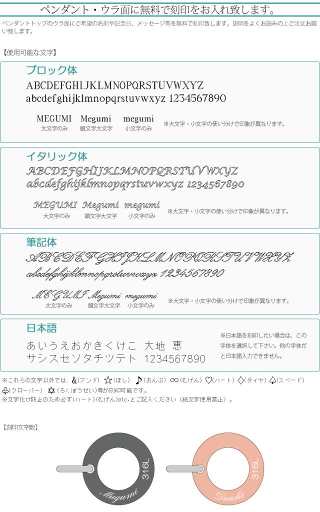 【ペンダントウラ面刻印】 1行のみ:8文字(日本語5文字)まで |