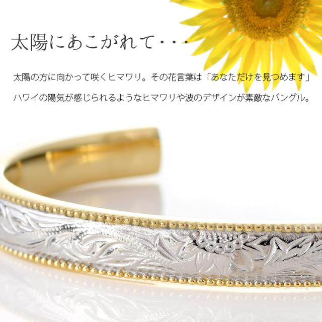 ハワイアンジュエリーペアバングル ヒマワリと波の繊細な彫りデザインがオシャレ♪