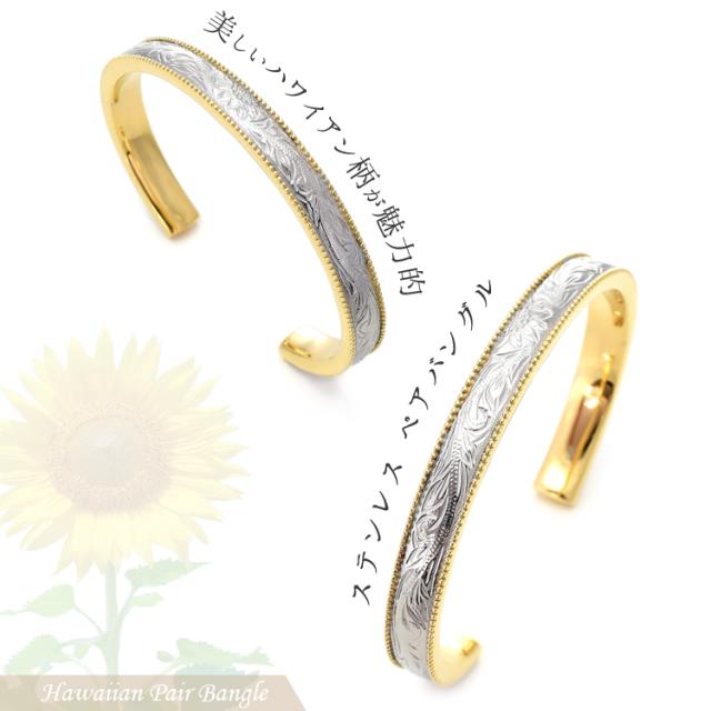 【送料無料 刻印無料】 ハワイアンペアバングル ステンレス ブレスレット ひまわり ランキング ギフト プレゼント 誕生日 記念日 ホワイトデー クリスマス ペア お揃い カップル