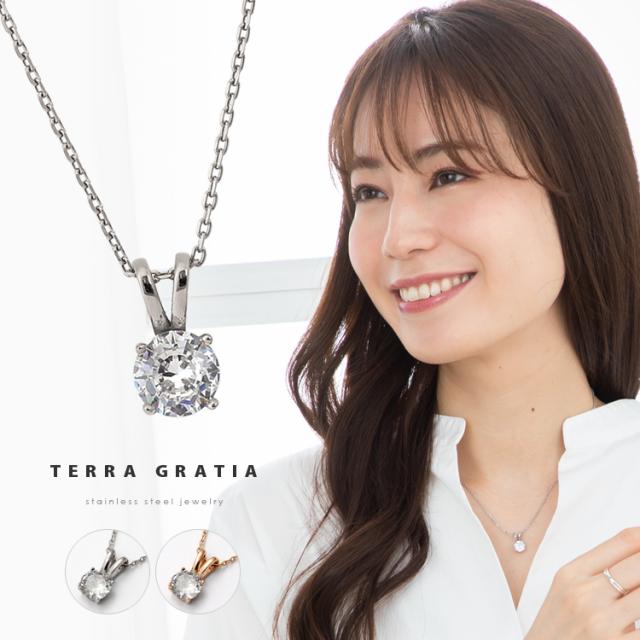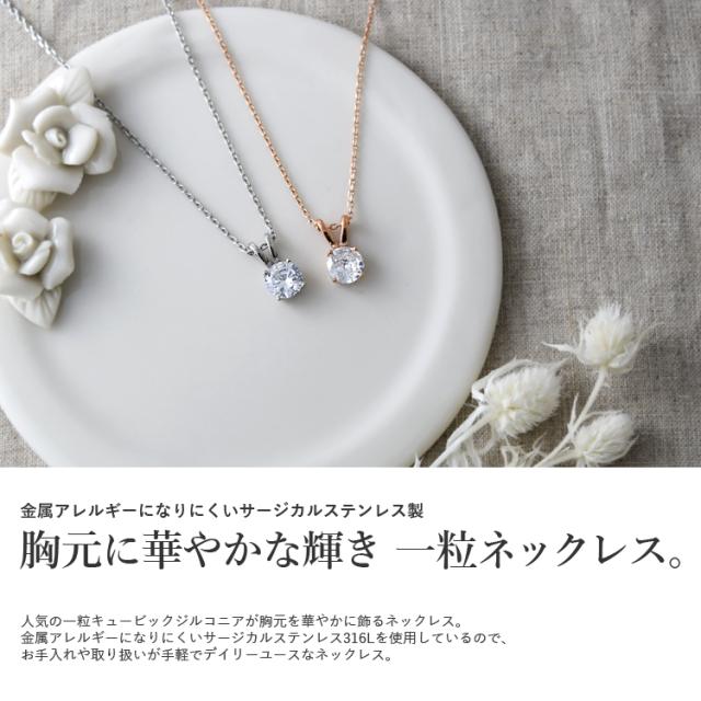 一粒 ジルコニア ネックレス レディース ステンレス