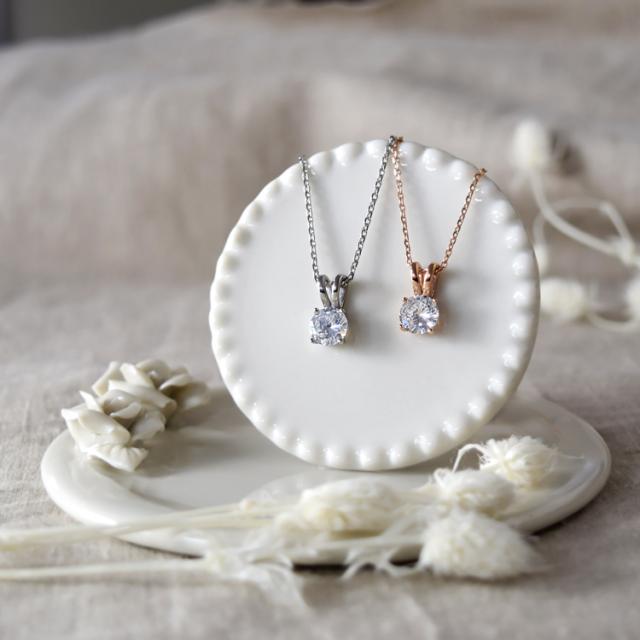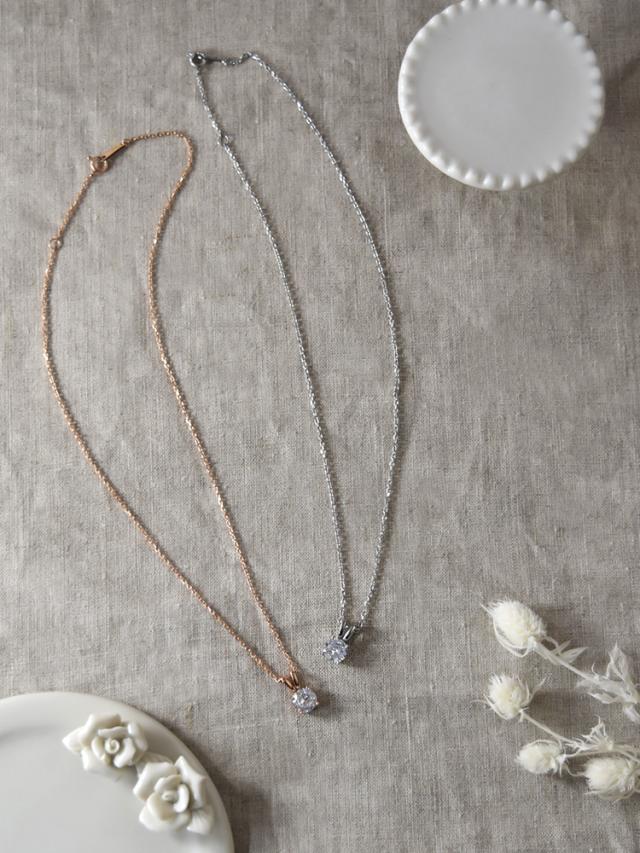 人気の一粒キュービックジルコニアが胸元を華やかに飾るネックレスです。