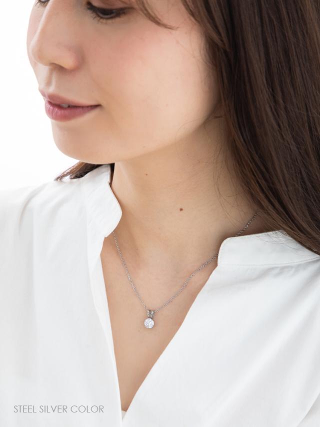 ネックレス レディース ステンレス 金属アレルギー対応 一粒 キュービックジルコニア 母の日 ギフト gpss638