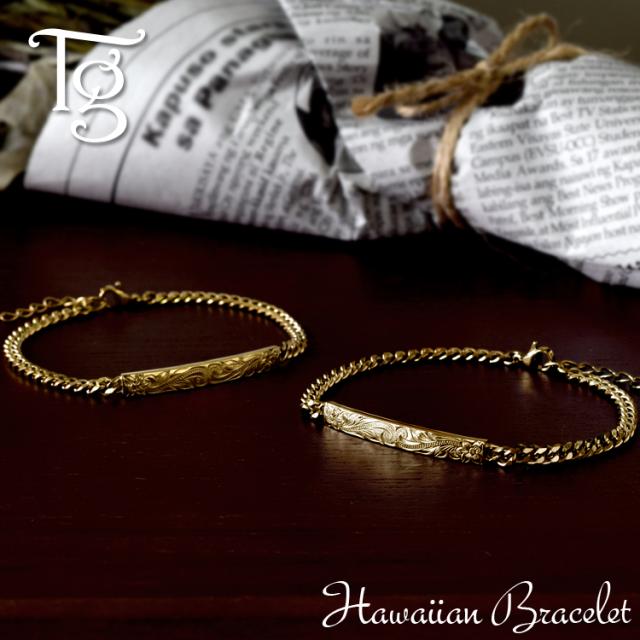 ハワイアンジュエリー ペアブレスレット 2本セット ステンレス つけっぱなし 金属アレルギー 刻印 シンプル IDプレート ハワイアン スティールシルバーカラー ローズゴールドカラー サージカルステンレス テラグラティア Terra-gratia PairBracelet gbss108pair
